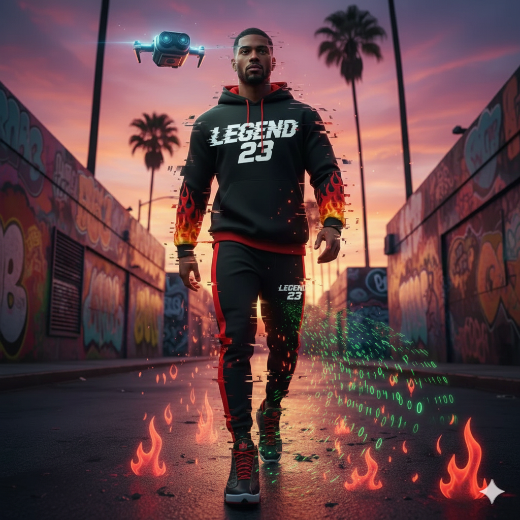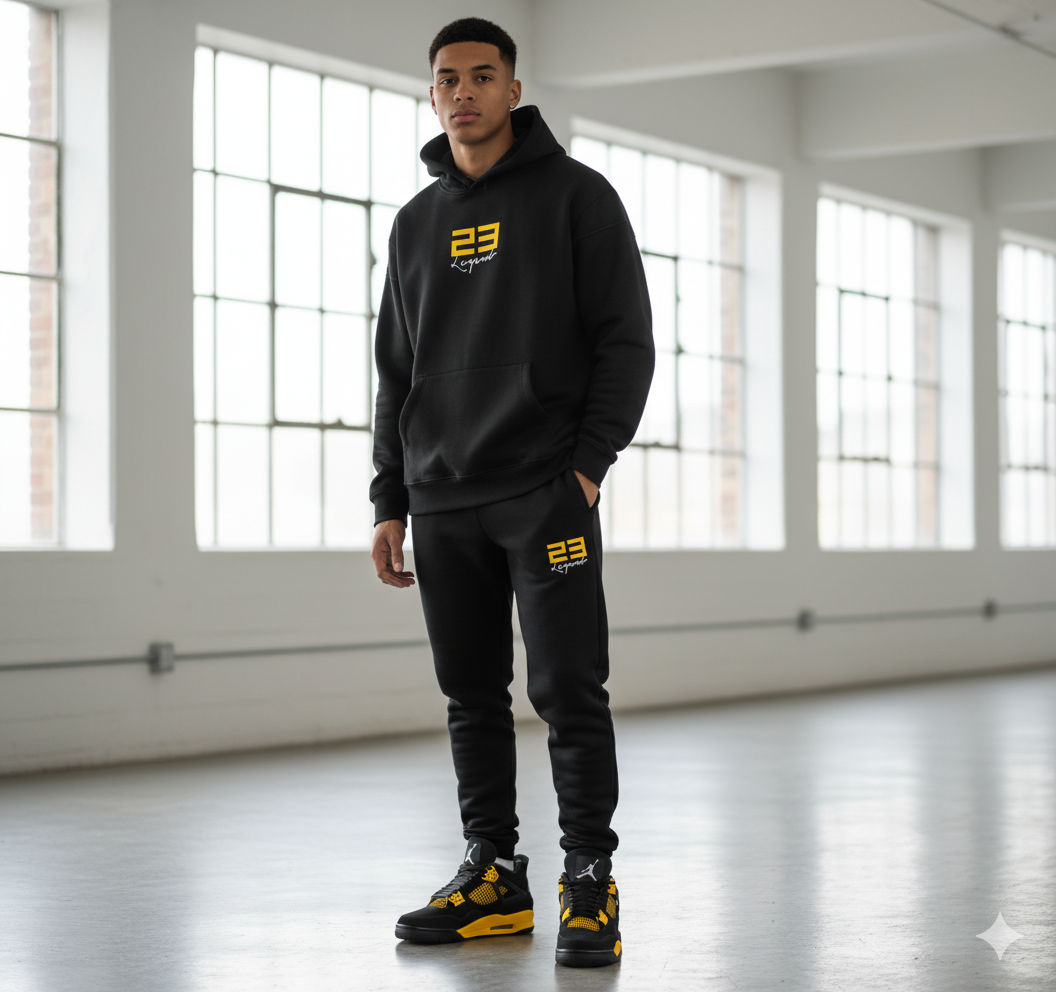 GOAT XXIII Black-on-Black Sweatsuit – Men's Hoodie & Joggers To Match Air Jordan 4 White Cement